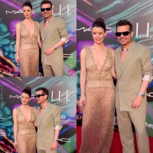 واختارت سات لشعرها تسريحة الكعكة ، مع مكياج بسيط، كما أثارت إطلالة زوجها الجدل، فقد ارتدى بدلة باللون البيج البيج” دون قميص أسفلها وثنى الأكمام.