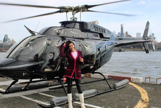 ووقفت صبري بجانب طائرة هليكوبتر أثناء رحلتها إلى منهاتن، وقوبلت الصورة بتعبير واسع من متابعيها عن مدى حبهم لها.
